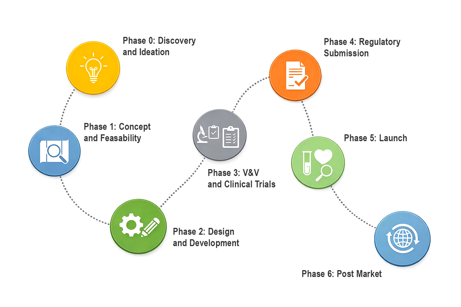 Provided is a phase-by-phase framework for embedding training strategy across the full medical device development lifecycle, from discovery through post-market support. This document maps seven development phases against the training considerations, stakeholder requirements, and deliverables that drive regulatory success and commercial adoption.